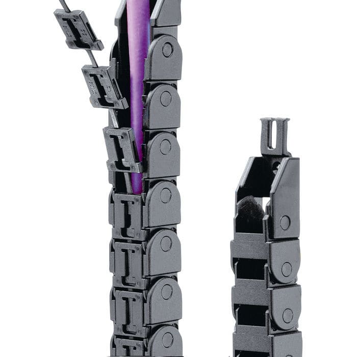 易拆裝式塑料拖鏈不易被腐蝕,拖鏈自身出現故障易修復處理,拖鏈中線纜出現故障后不需要重新穿線,使用更方便。