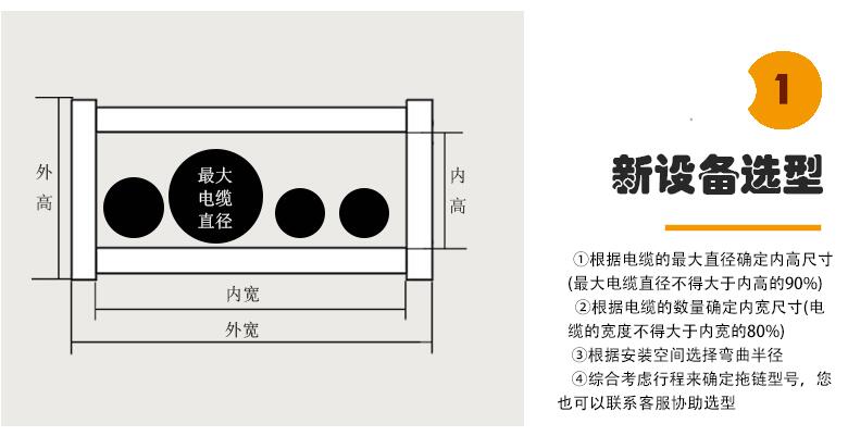 1.根據(jù)電纜的最大直徑確定內高尺寸(最大電纜直徑不得大于內高的90%)。