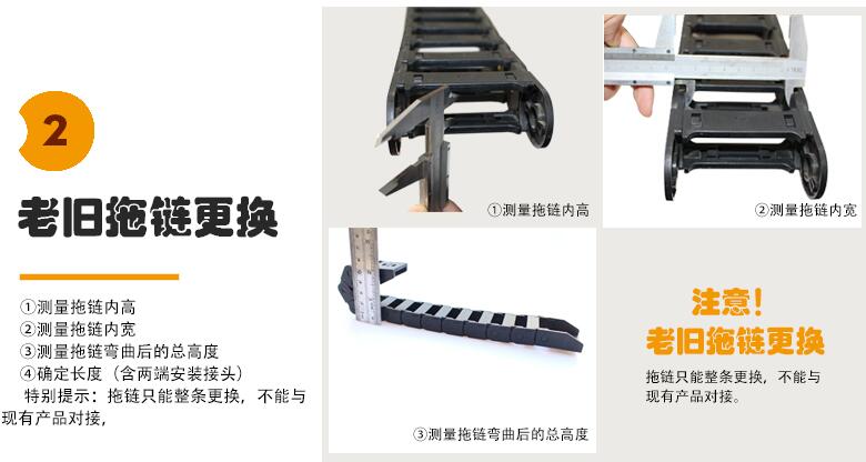 | 拖鏈型號 | 內高X內寬 | 外高X外寬 | 彎曲半徑 | 樣式 | 接頭尺寸 |